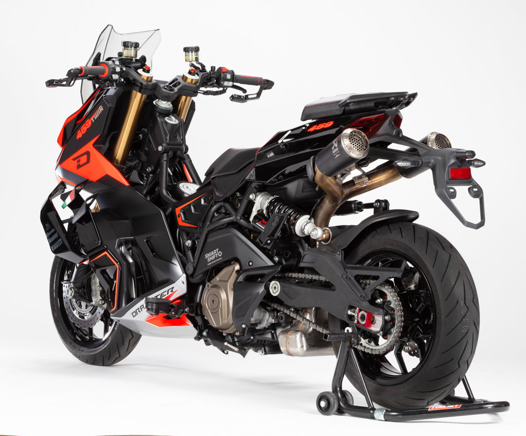 With its exposed trellis frame, aggressive stance and unmistakable Dragster DNA, the 459 Twin SmartShift brings the pure Italjet spirit to a wider audience: innovation, artistry and performance with zero compromise.