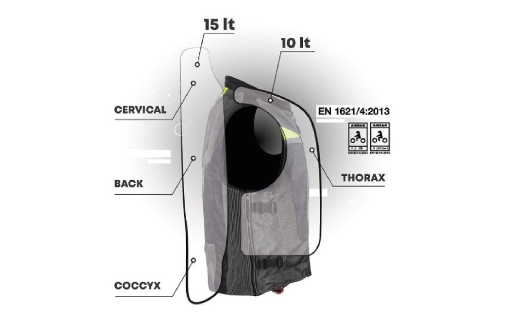 Fast and Efficient Protection: With an inflation time of just 80 milliseconds, the vest's airbag systems deploy rapidly in the event of an accident, providing 25 liters of protection volume around the rider's body. This swift response ensures maximum protection when it matters most.