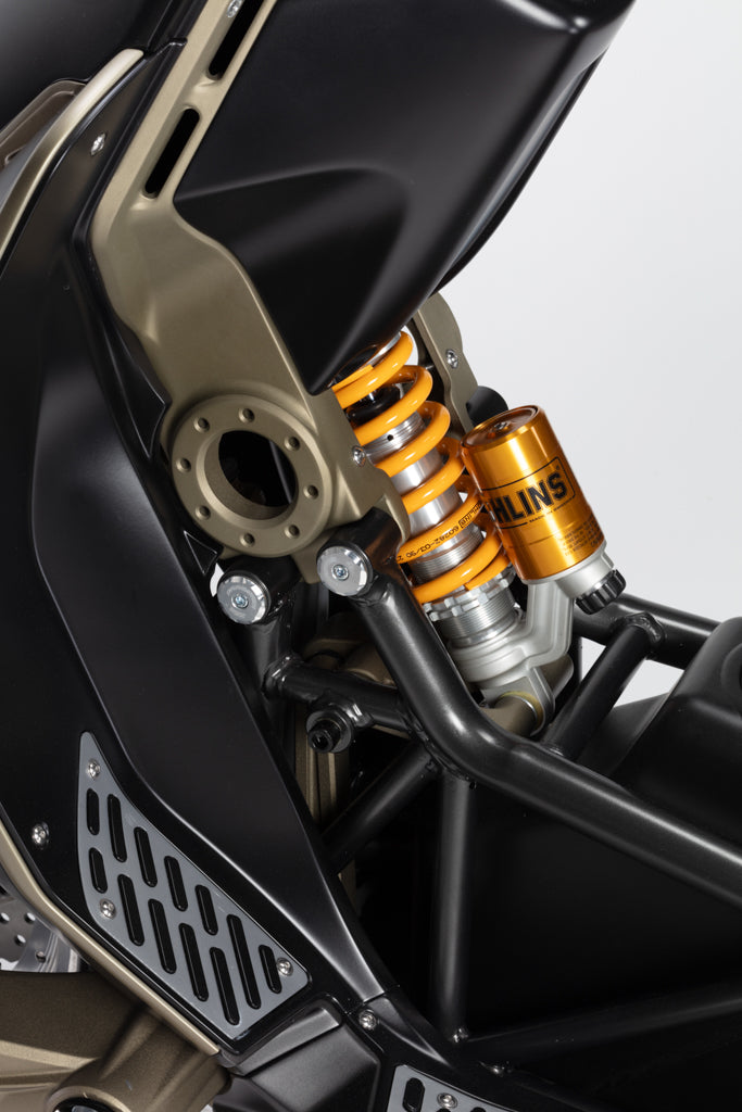 Twin outlets flanking the central rear shock absorber, delivering both performance and a signature sound.